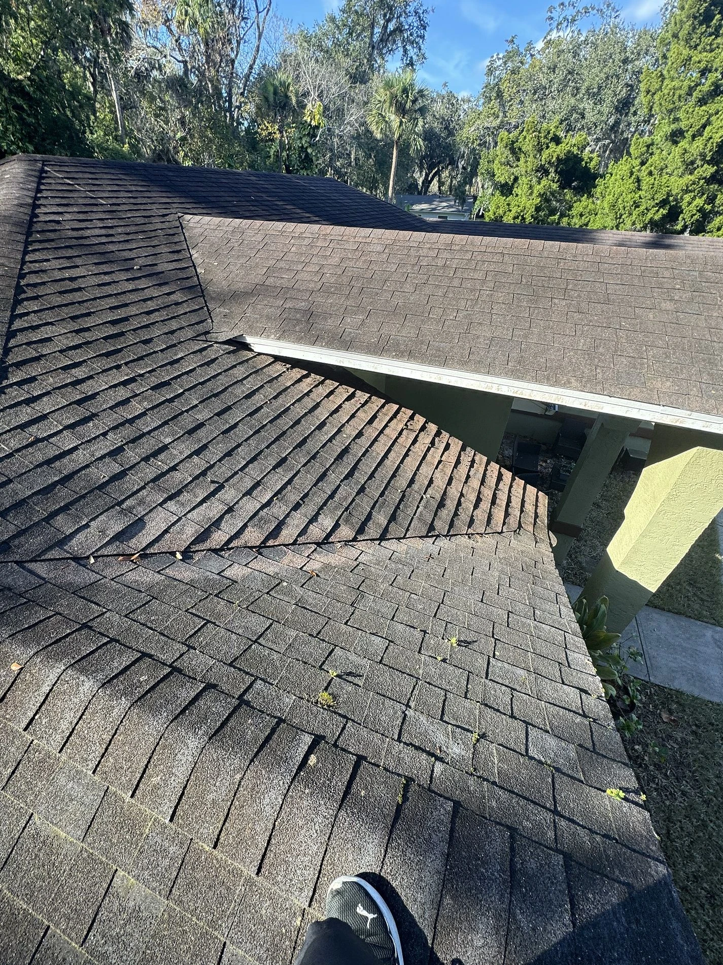 This residential roof in Port Orange, FL was showing clear signs of age-related wear after years of exposure to Florida sun, coastal winds, and seasonal weather.