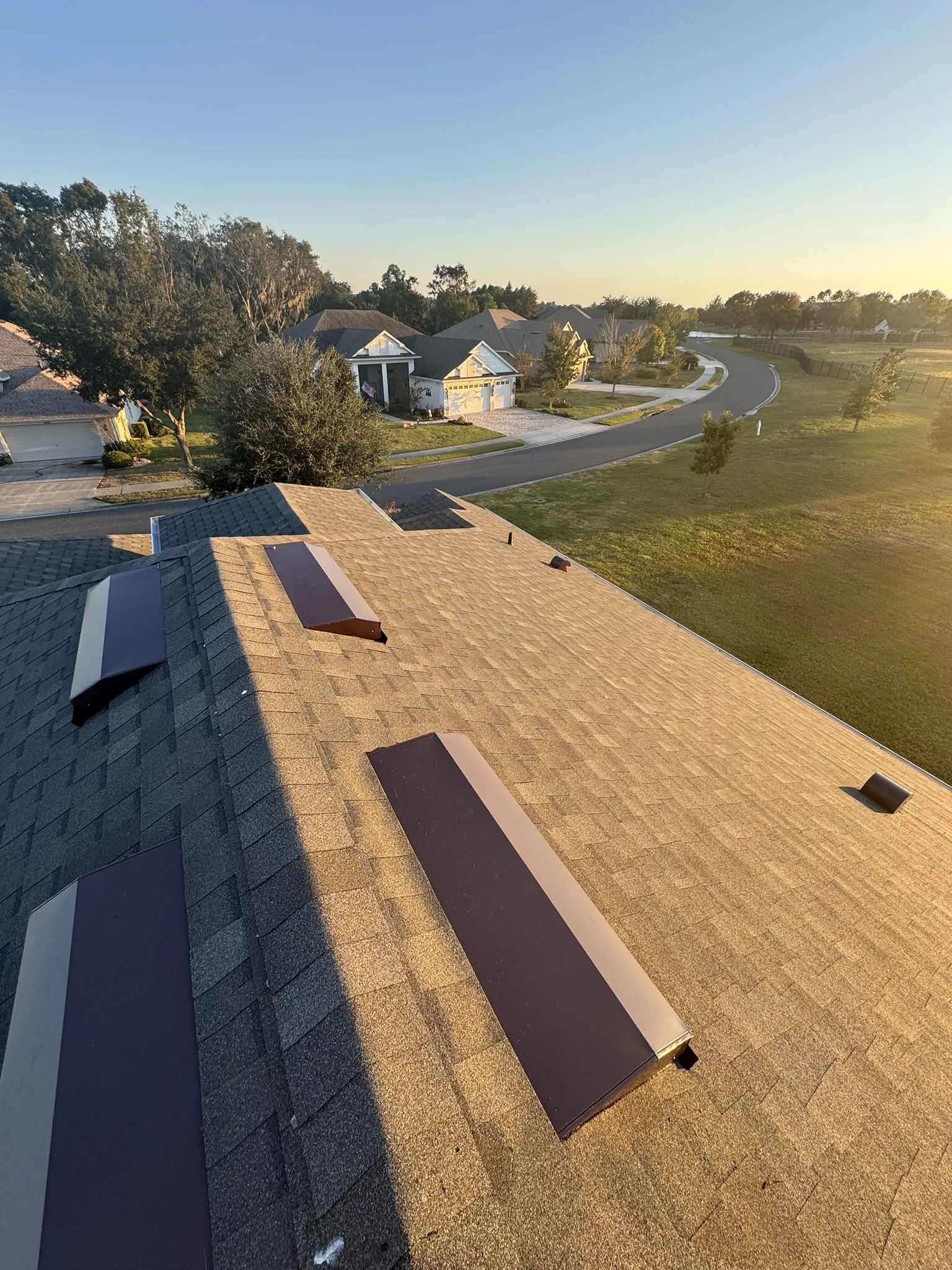 This Mount Dora, FL home experienced widespread storm damage, including creased shingles, granule loss, lifted tabs, and compromised ventilation components. After noticing roof deterioration and potential water intrusion, the homeowner contacted Integrity Roof Services for a professional assessment and a free roof inspection.